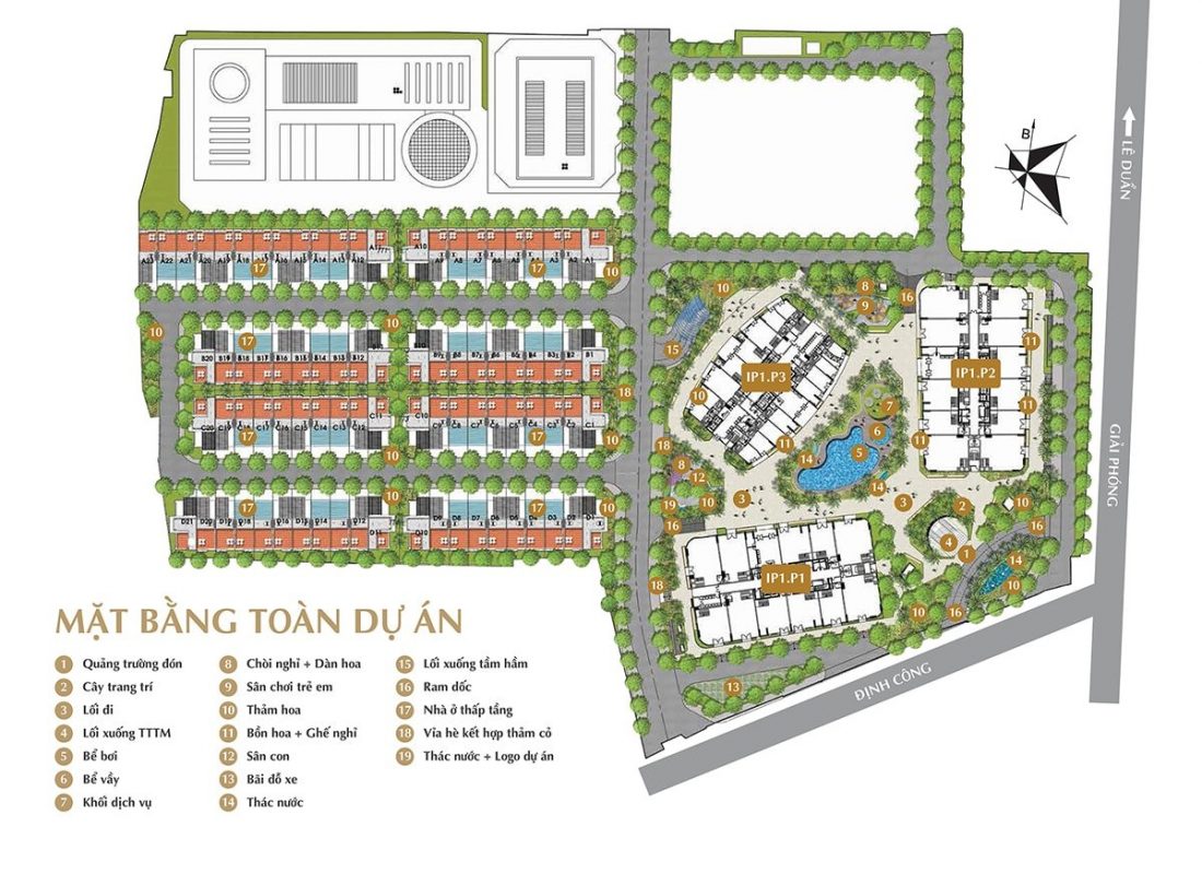 65% diện tích dự án được dành cho cây xanh và tiện ích đem đến cho cư dân một cuộc sống tiện nghi, đẳng cấp trong quần thể sinh thái xanh.